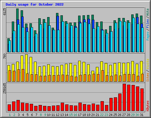 | Day | Hits | Files | Pages | Visits | Sites | KBytes | ||||||