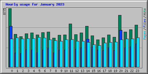 | Hour | Hits | Files | Pages | KBytes | ||||||||